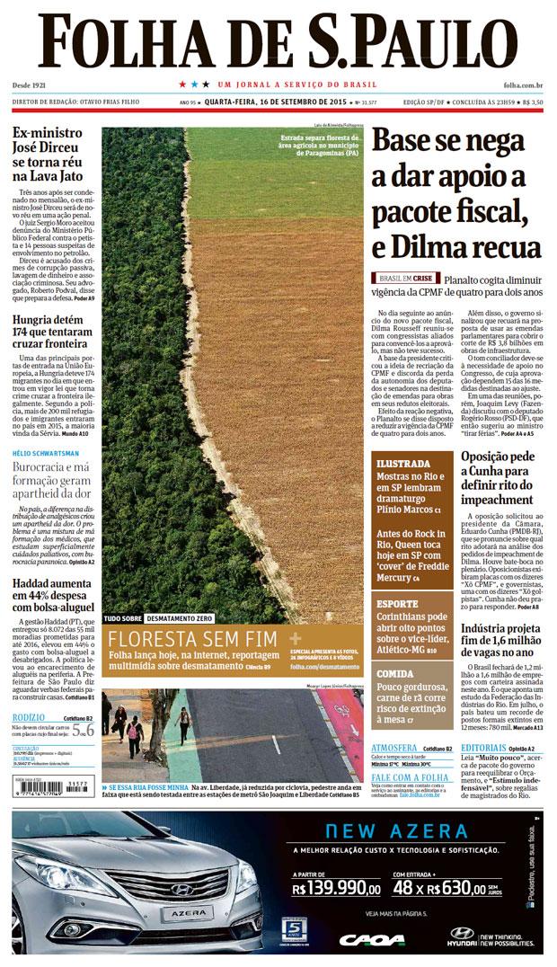 Bom dia! Esta é a capa da Folha de hoje: